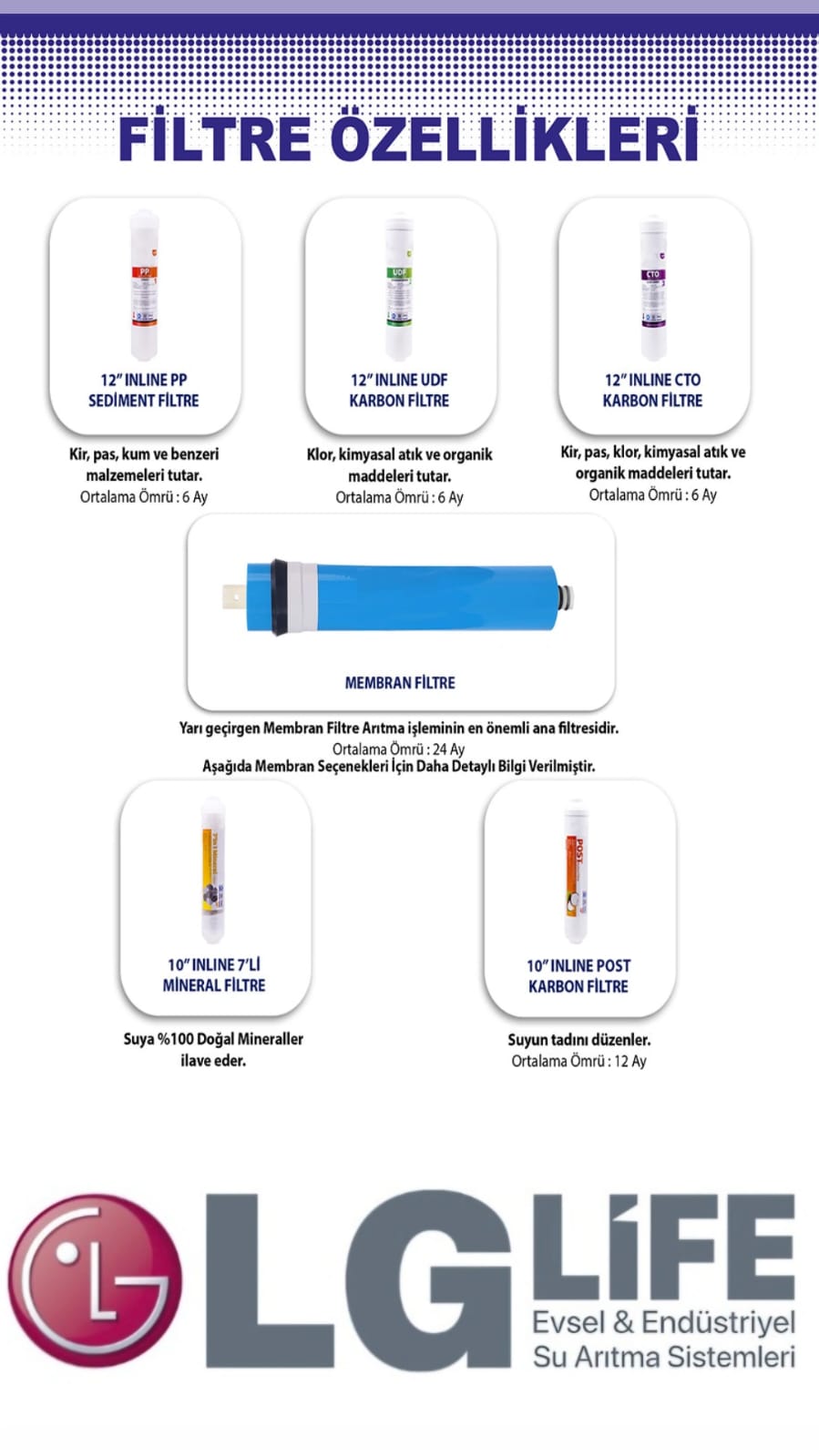 - ✨ 5. Post Karbon Filtre (10" Inline Post Karbon): Kalan kokuları giderir, %100 doğal mineralleri (kalsiyum, magnezyum) ekler, pH dengesi sağlar. Ortalama ömür: 12 ay.