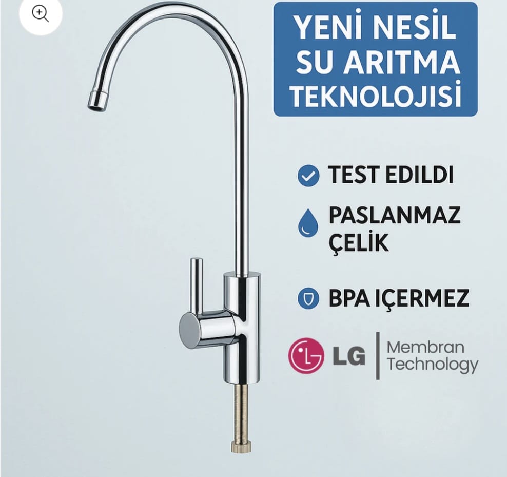 - 🔬 4. Membran Filtre (75/80 GPD RO): Mikroskobik partiküller, bakteriler, virüsler ve %99.99 oranında zararlı maddeleri (arsenik, florür, nitrit) ayırır, yumuşak içimli su üretir. Ortalama ömür: 24 ay.